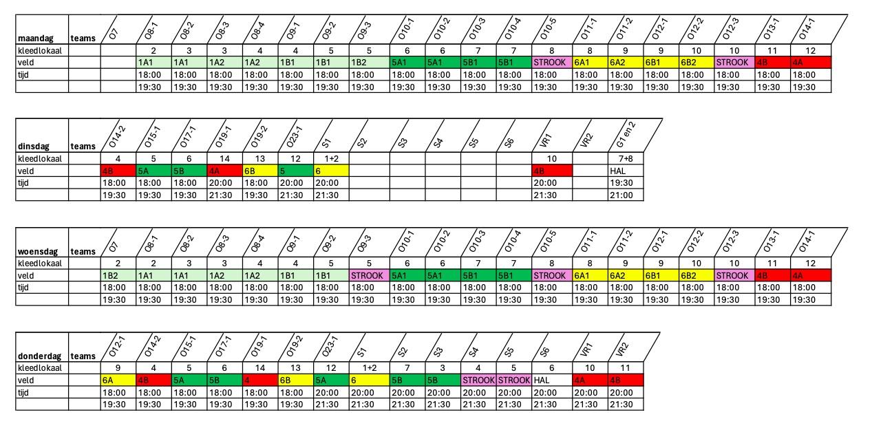 Overzicht thuiswedstrijden